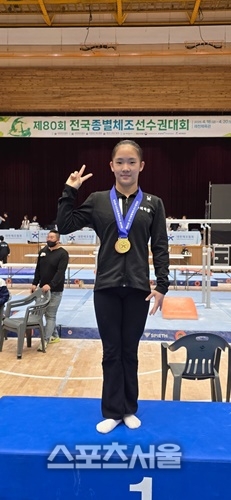 송채연(체조, 광주체중 3)은 이단평행봉과 개인종합에서 2관왕을 내다본다.