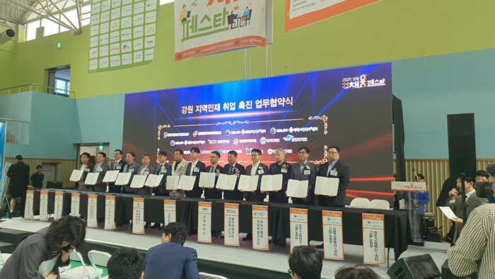 더불어, 이번 행사에서는 강원권 9개 주요 대학, 고용노동부(강원지청·강릉지청·원주지청), 강원특별자치도경제진흥원, (재)강원혁신도시발전지원센터 간 지역인재 취업 촉진을 위한 업무협약 체결식이 함께 진행되었다.