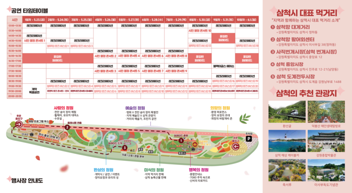 삼척 장미공원은 약 8만 5,000㎡ 규모의 부지에 220여 종, 16만 그루 이상의 장미가 식재되어 있어, 축제 기간 천만 송이의 장미가 만개해 장관을 이룰 예정이다. 올해 장미축제는 운영 기간을 기존 5일에서 10일로 연장하고, 야간 콘텐츠와 참여형 프로그램을 대폭 확대했다. ‘장미요정과 비밀의 정원’을 주제로 스토리 기반 공간 연출과 체험, 퍼포먼스를 선보이며, 관람객이 직접 이야기 속 주인공이 되어 축제의 세계관을 함께 만들어가는 색다른 경험을 제공할 계획이다.