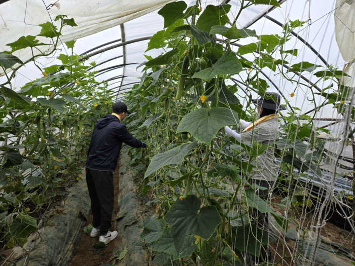 오이 농가 찾아 농촌 인력난 해소에 힘 보태