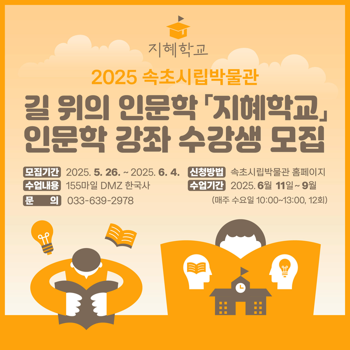 [스포츠서울ㅣ김기원기자]속초시립박물관이 길 위의 인문학 ‘지혜학교’ 수강생을 5월 26일부터 선착순으로 25명을 모집한다.