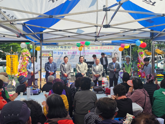 [스포츠서울ㅣ김기원기자]속초시 먹거리단지번영회(회장 송영균)와 국수사랑봉사단(단장 신오일)은 지난 25일, 먹거리단지 공원에서 지역 어르신 600여 명을 초청하여 경로잔치와 노래경연대회 행사를 진행했다.