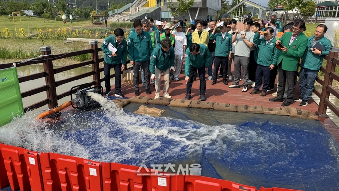 [스포츠서울|조광태기자] 광주광역시(시장 강기정)는 26일 오후 남구 양과동 빛고을농촌테마공원에서 ‘2025년 여름철 자연재난 대비 풍수해 대응 유관기관 합동훈련’을 실시했다.