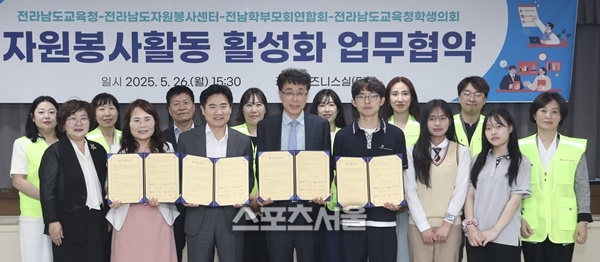[스포츠서울|조광태기자] 전라남도교육청(교육감 김대중)이 ESG 기반의 사회공헌활동 및 자원봉사활동 활성화를 위해 학부모, 학생, 지역사회와 맞손을 잡았다.