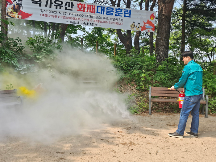 시는 속초소방서, 산불진화대 등 관계기관과 합동으로 5월 27일 오후 2시에 사적 ‘속초 조양동유적’에서 2025년도 상반기 국가유산 화재 대응 훈련을 전개했다.