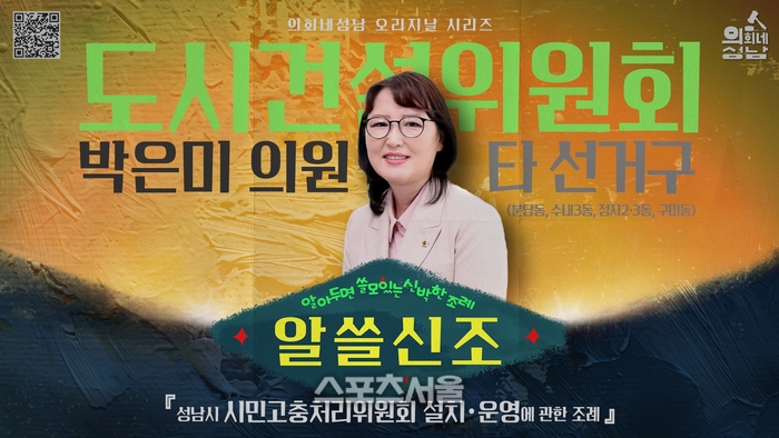 〔스포츠서울│성남=좌승훈기자〕 성남시의회는 ‘알쓸신조’ 영상으로 28일 오후 5시 박은미 의원 등 11명이 발의한 ‘시민고충처리위원회 설치·운영에 관한 조례’를 시의회 공식 SNS에 게시한다.