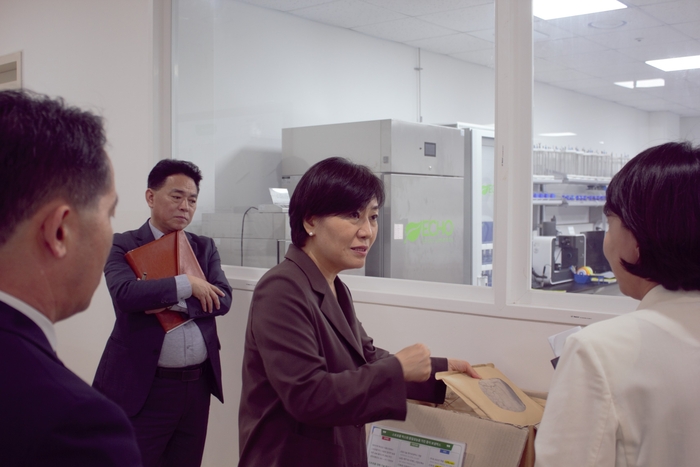 식품진흥원 김덕호 이사장의 국가식품클러스터 및 식품진흥원 사업 현황 보고로 시작된 이날 일정은, 송 장관의 현장 시찰로 이어졌다. 송 장관은 보고를 마친 뒤, 식품기업의 수출 경쟁력 강화를 지원하는 식품패키징센터를 둘러보며 주요 지원 기능과 운영 현황을 점검했다.