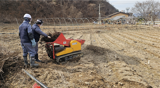 영농부산물 파쇄지원사업단은 농업 현장에서 발생하는 고추·깨·콩·옥수수·과수 나무 등의 수확 후 잔재물을 직접 농가에 찾아가 파쇄해주는 사업이다. 미세먼지 발생과 산불 위험을 줄이기 위한 목적으로 추진됐다.
