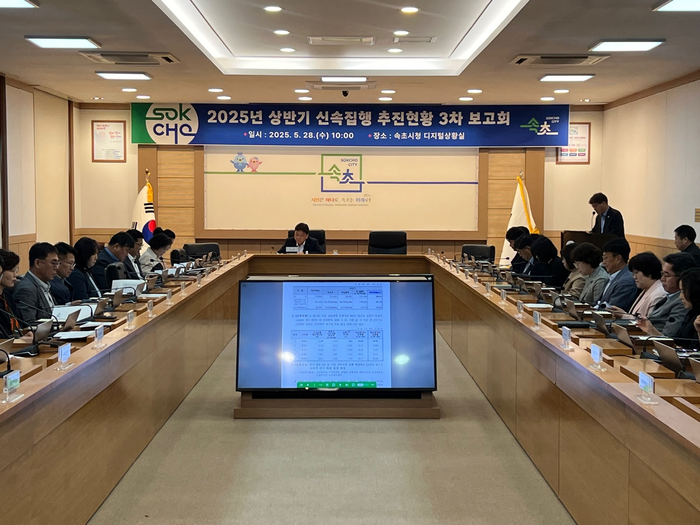 속초시는 배상요 부시장의 주재로 5월 28일, 2025년도 상반기 신속집행 추진현황 3차 보고회를 개최했다. 보고회에는 국장, 보건소장과 신속집행 대상액 10억 원 이상 부서장이 참석해 부서별 추진 상황과 향후 계획을 점검하며 집행률을 높이기 위한 구체적인 대책을 논의했다.