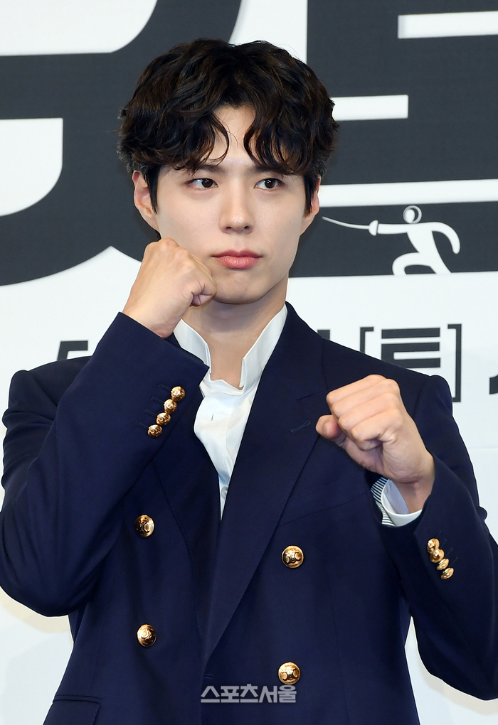 배우 박보검이 29일 서울 구로구 더링크서울 트리뷰트포트폴리오 호텔에서 진행된 JTBC 새 토일드라마 ‘굿보이’ 제작발표회에서 취재진을 향해 포즈를 취하고 있다.