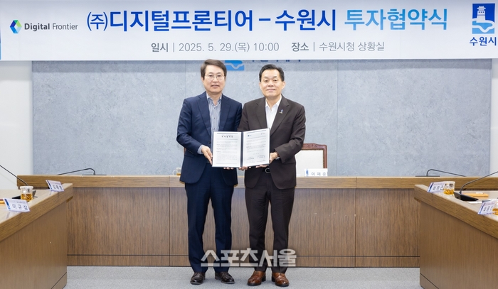 〔스포츠서울│수원=좌승훈기자〕이재준 수원특례시장은 29일 차세대 메모리 검사장비 제조기업인 ㈜디지털프론티어와 민선 8기 제13호 투자협약을 체결한 후 “디지털프론티어가 첨단산업 선도 도시인 수원시로 오신 것을 환영한다. 훌륭한 인재들을 채용해 더 발전하길 바란다”고 말했다.