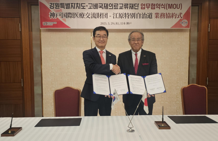 [스포츠서울ㅣ춘천=김기원기자]강원특별자치도(도지사 김진태)는 5월 29일(목), 일본 고베국제의료교류재단과 의료기기 분야 상생발전을 위한 업무협약(MOU)을 체결하고, 도내 기업 ‘네오에이블(대표 백승엽)’의 일본 수출계약 성과를 함께 발표했다.