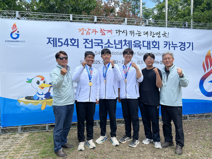 권율 학생은 카누 1인승·2인승 두 종목에 출전하여 모두 금메달을 차지하며 대회 2관왕과 함께 최우수선수상을 수상하는 등 전국 무대에서 빛나는 성과를 거두었다. 이는 중학교 3학년임에도 불구하고 강인한 정신력과 꾸준한 연습 그리고 팀의 헌신적인 지원이 어우러진 값진 결과이다.