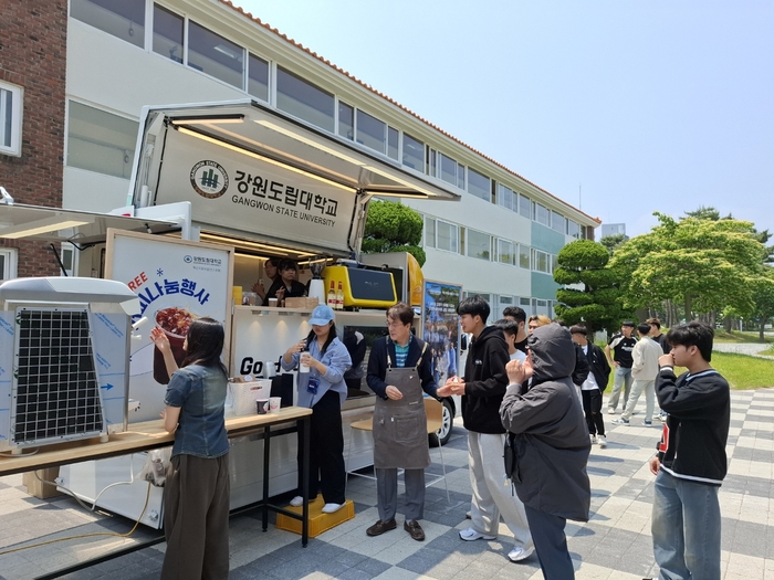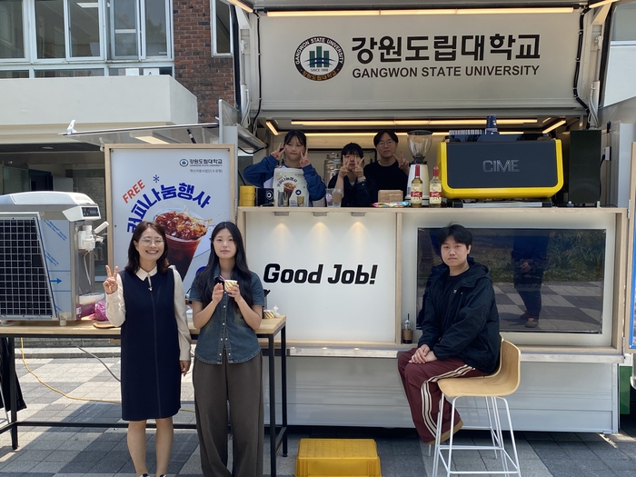 [스포츠서울ㅣ김기원기자]강원도립대학교(총장 김광래, 이하 대학)는 혁신지원사업(Ⅱ유형) 융합교육과정에 참여 중인 청년 로컬 크리에이터와 함께 국제교류원 앞 캠퍼스 내에서 신규 제작한 커피트럭의 오픈을 기념하는 ‘커피나눔 소통행사’를 개최했다고 밝혔다.