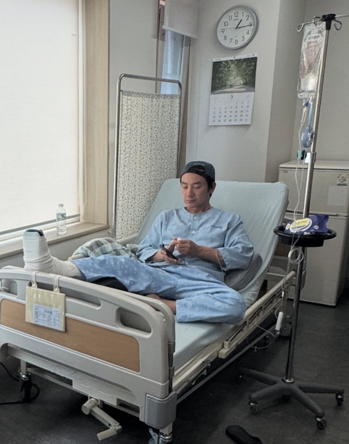 엄태웅은 5월 30일 자신의 SNS 계정에 별다른 멘트 없이 다리에 깁스를 하고 병실에 앉아 있는 사진을 게재했다.