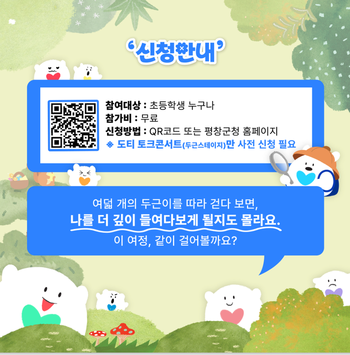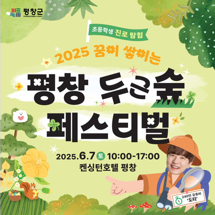 [스포츠서울ㅣ김기원기자]평창군은 오는 7일 진부면 켄싱턴호텔에서 관내 초등학생을 대상으로 진로 탐험 ‘2025 꿈이 쌓이는 평창, 두근 숲 페스티벌’을 개최하고 참가자 300명을 선착순으로 모집한다.