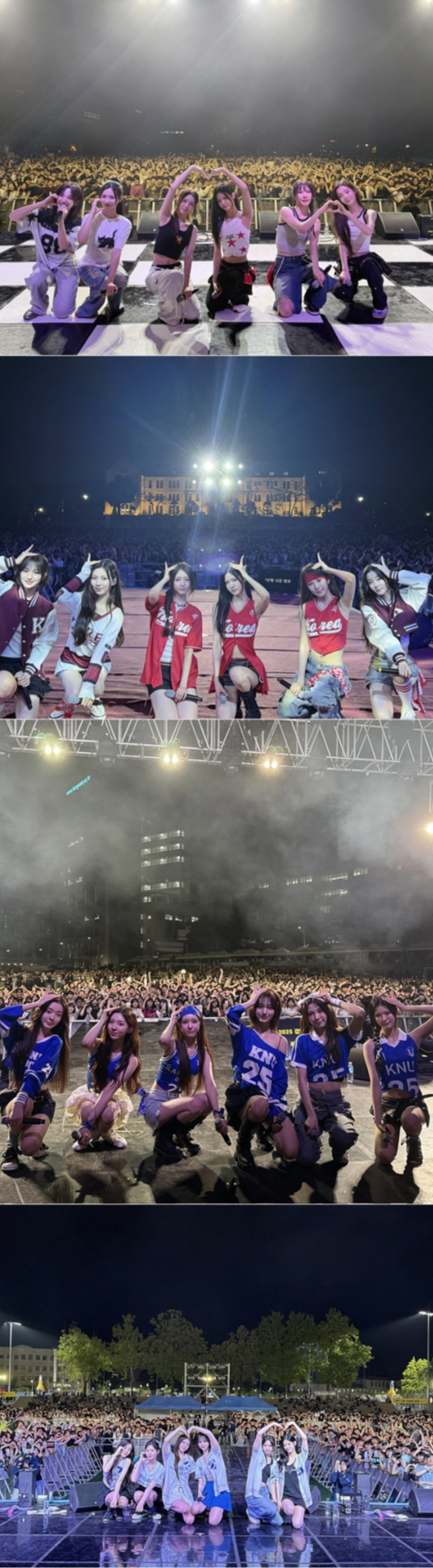 21일과 22일에는 각각 고려대, 강남대 축제 무대에 올랐다. 특히 고려대 무대에선 밴드 동아리와의 협업과 리더 카시아의 머리 묶는 퍼포먼스가 공식 SNS에 공개되며 8일 만에 300만 뷰를 돌파하는 등 ‘대학축제 레전드 무대’로 회자되고 있다. 23일 전북대 공연에선 관객들의 떼창까지 이끌어내며 신예답지 않은 무대 장악력을 입증했다.