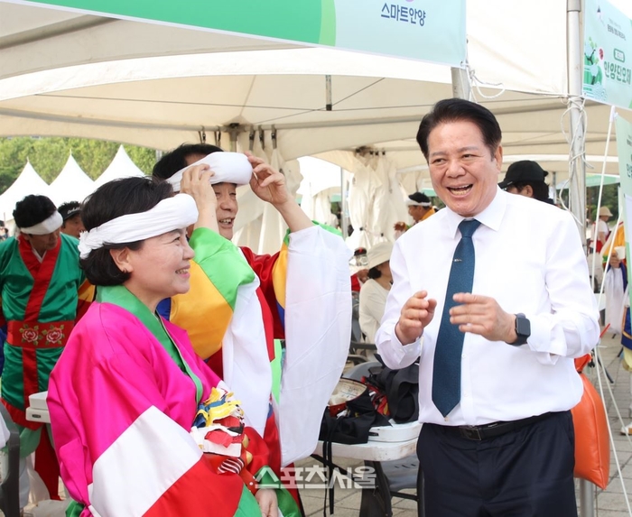 〔스포츠서울│안양=좌승훈기자〕최대호 안양시장은 31일 (음력 5월 5일) 단오를 맞아 동안구 평촌중앙공원에서 열린 ‘제39회 안양단오제’에 참석해 “단오는 우리 조상들의 지혜가 살아 숨 쉬는 소중한 고유 명절”이라며 “시민들과 함께 전통문화를 즐기고 나눌 수 있어 기쁘고, 시민들의 가정에 건강과 행운이 가득하길 바란다”고 말했다.