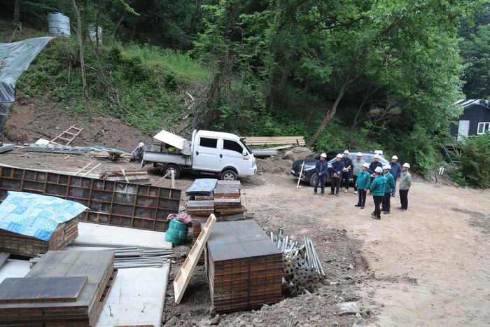 육동한 시장과 시 관계자들은 사방댐 공사 진행 상황과 인근 취약지역의 안전 관리 실태, 인근 마을 대피체계 등을 점검했다.