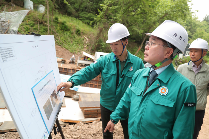 [스포츠서울ㅣ춘천=김기원기자]육동한 춘천시장이 2일 동면 감정리 치유의 숲과 사방댐 설치 현장 등 산사태 취약지역을 직접 찾아 여름철 자연재난 대비 현장점검에 나섰다.