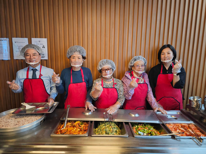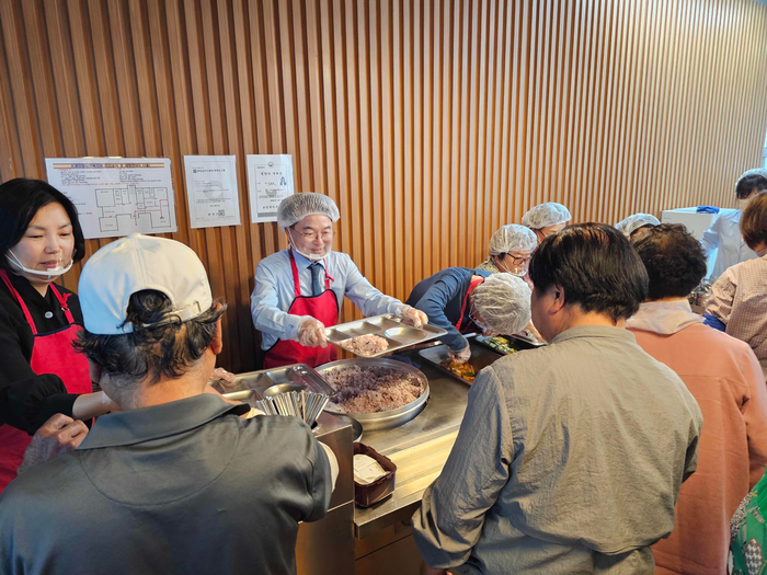 육동한 시장은 이날 50분간 배식 봉사를 펼친 이후에는 어르신들과 함께 오찬을 나누고 기념촬영의 시간을 가졌다.