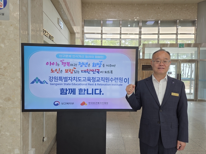 [스포츠서울ㅣ김기원기자]강원특별자치도교육청교직원수련원(수련원장 황득중)은 6월 2일(월) 인구감소와 고령화 문제에 대한 사회적 인식 개선과 공감대 확산을 위한 ‘인구문제 인식개선 릴레이 캠페인’에 동참했다.