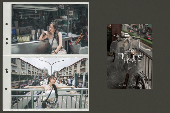 솔라는 3일 오후 1시 공식 SNS에 중국어 싱글 ‘Floating Free’의 첫 번째 콘셉트 포토를 게재했다. 타이베이 올 로케이션으로 촬영된 이번 콘셉트 포토는 현지의 도심 풍경을 그대로 담아내 눈길을 끈다.
