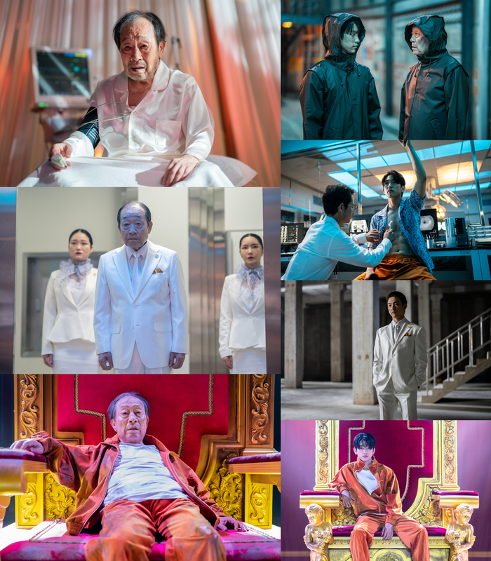 이날 공개된 스틸은 췌장이식을 받은 후 젊음을 흡수하는 초능력으로 인해 급격하게 회춘한 영춘 역 신구와 박진영의 닮은꼴 모습이 담겼다. 먼저 같은 의상을 입고 함께 찍은 투샷에서는 서늘한 표정까지 똑닮은 두 사람의 높은 싱크로율이 놀라움을 안긴다.