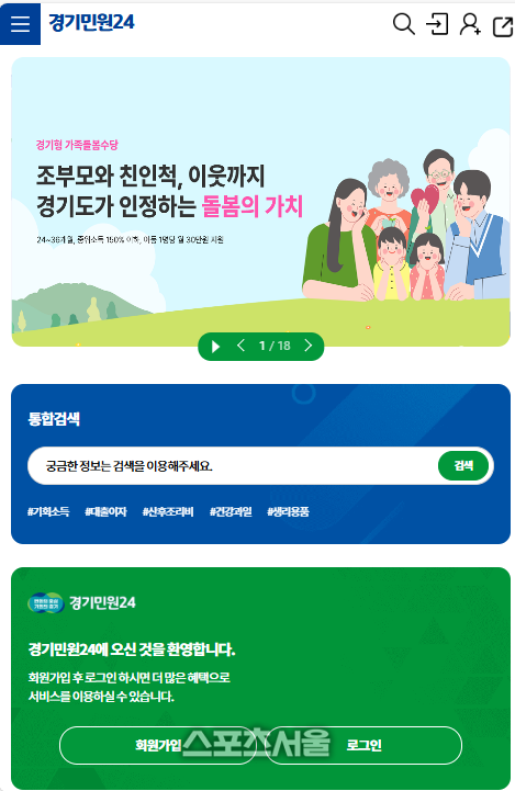 ‘경기민원24’는 경기도민이 각종 행정서비스를 온라인으로 손쉽게 신청할 수 있도록 지원하는 누리집이다. 주민등록 등초본, 건강보험 자격확인서 등 29종의 행정정보가 시스템과 연계되며, 불필요한 서류 제출 없이 신청 자격을 자동 확인할 수 있다.