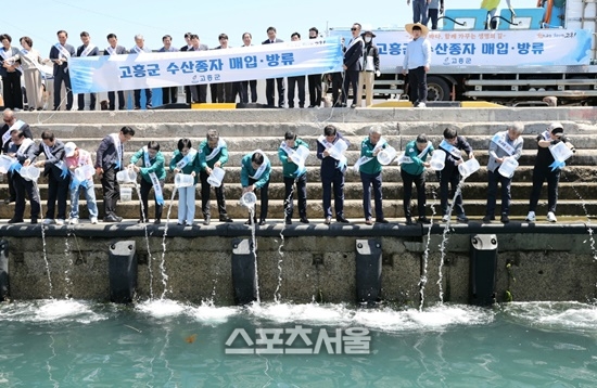 [스포츠서울┃조광태기자] 전남 고흥군(군수 공영민)은 5일 도양읍 북촌지선에서 감성돔 종자 10만 9천 마리를 방류하며 수산자원 조성과 지역 어업인의 소득 증대를 위한 뜻깊은 행사를 개최했다.