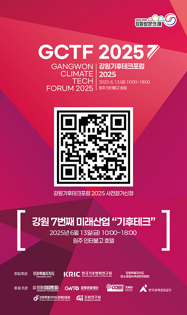 이번 포럼은 강원자치도가 7대 미래산업 중 하나로 ‘기후테크’를 선정한 이후 처음 개최되는 대규모 포럼으로, 향후 관련 정책 수립과 산업 생태계 조성에 있어 중요한 전환점이 될 것으로 기대를 모으고 있다.