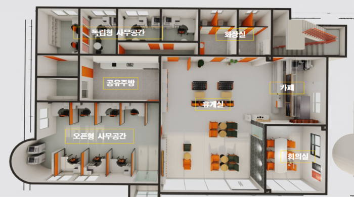 센터는 입주기업 사무실 5실(총 12석), 공유주방, 회의실, 휴게실, 카페 등을 갖추고 있으며, 카페와 휴게실은 지역 주민과 함께 사용하는 지역복합문화공간으로도 활용할 예정이다.