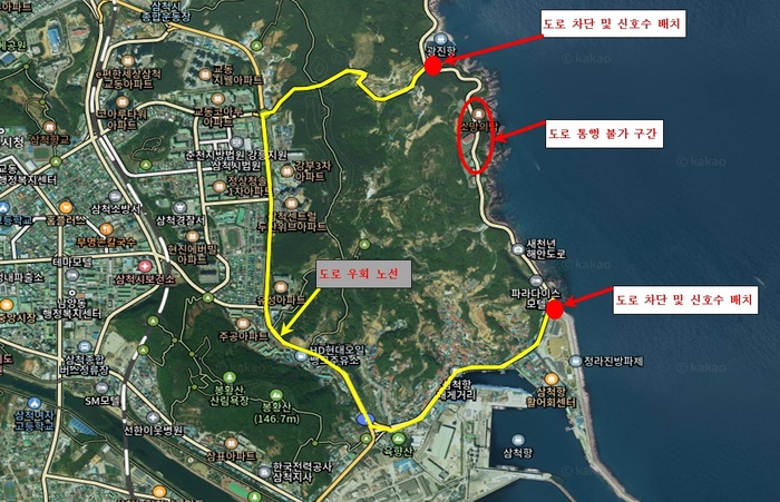 [스포츠서울ㅣ김기원기자]삼척시는 새천년 해안도로 썬라이즈 명소화사업 추진을 위해 2025년 6월 11일(수) 오전 0시부터 오후 8시까지 도시계획도로 소로1-11호 구간(교동 산81-2번지 일원)에서 차량 전면 통행 제한을 실시한다고 밝혔다.