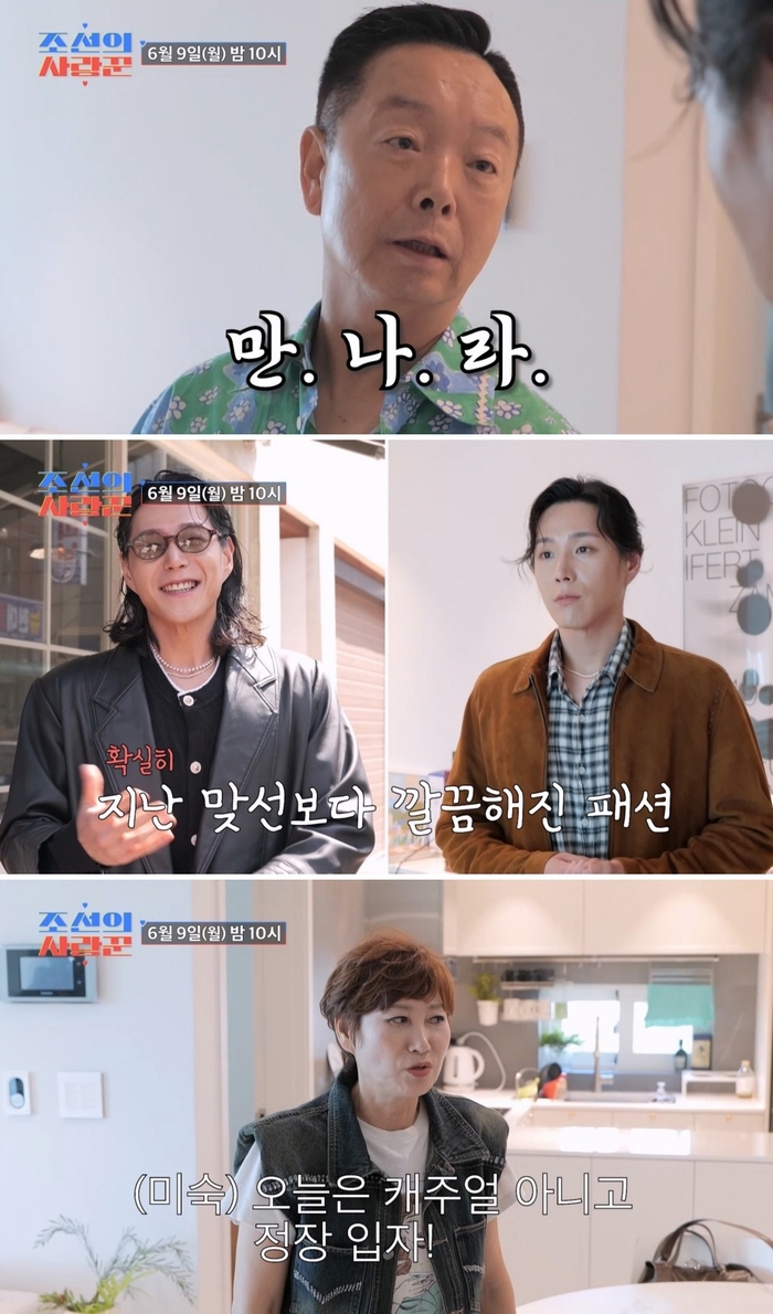 그러나 이 모습도 성에 차지 않은 임미숙은 “오늘 캐주얼 말고 정장 입자”며 본격적인 맞선룩을 제안했다. 정장 조끼까지 더해 스리피스 정통 정장을 차려입은 김동영은 “이건 아니다. 너무 증권가다”라며 고개를 저었다. 이에 임미숙은 “아니, 그분도 오늘 정장 입고 나오신다고 한다. 일하는 곳이 정장 입는 곳이니, 너도 같이 정장을 입어라”라고 강조했다.