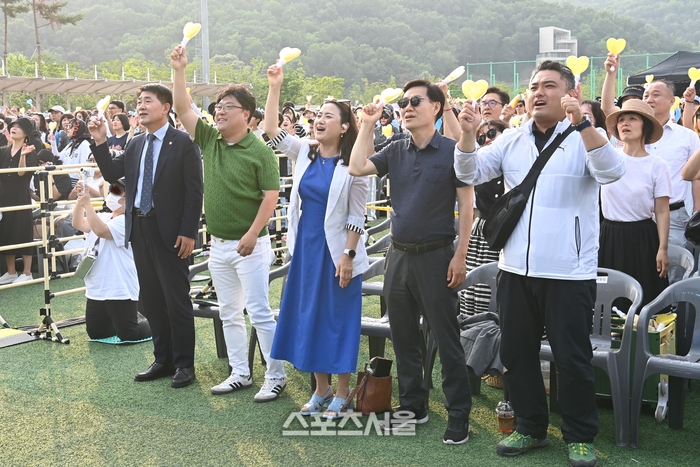 〔스포츠서울│화성=좌승훈기자〕화성시의회 배정수 의장을 비롯해 김상균, 김영수 운영위원장, 이은진, 이해남 의원은 지난 7일, 동탄 여울공원 축구장 특설무대에서 열린 ‘특별한 콘서트’에 참석해 1만5000여 명의 시민들과 함께 소통하며 화합의 시간을 가졌다.