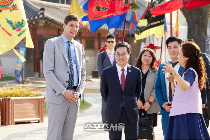 두 사람은 이날 조선 후기 개혁정치의 상징인 화성행궁을 찾아 정조대왕이 백성과 소통하며 지방통치를 실험했던 공간의 역사적 의미를 되새겼다. 이어 수원시립미술관에서 진행된 면담에서는 관세 파고 속 양 지역 간 경제협력 강화, 미래세대 교류 확대, 스포츠 외교 등 협력 의제를 논의했다.