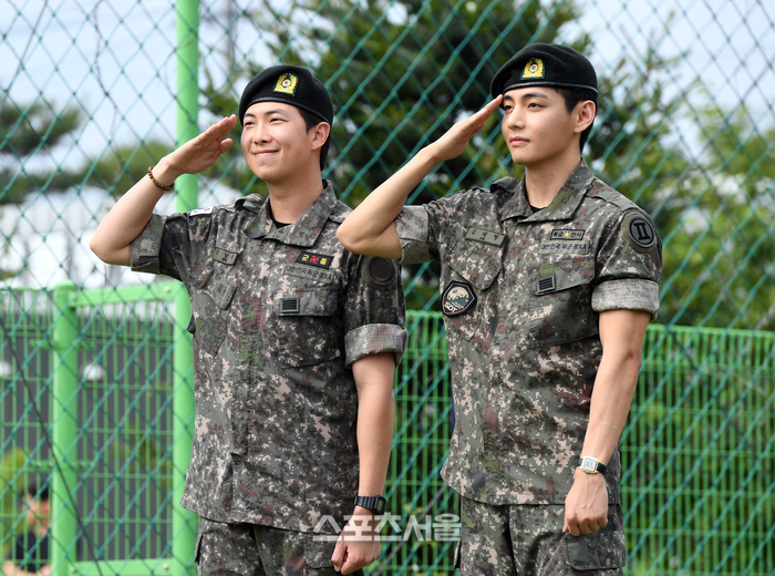 경례 구호가 달랐을 뿐 RM과 뷔의 무대 복귀를 향한 마음 만큼은 하나로 완벽하 일치했다.