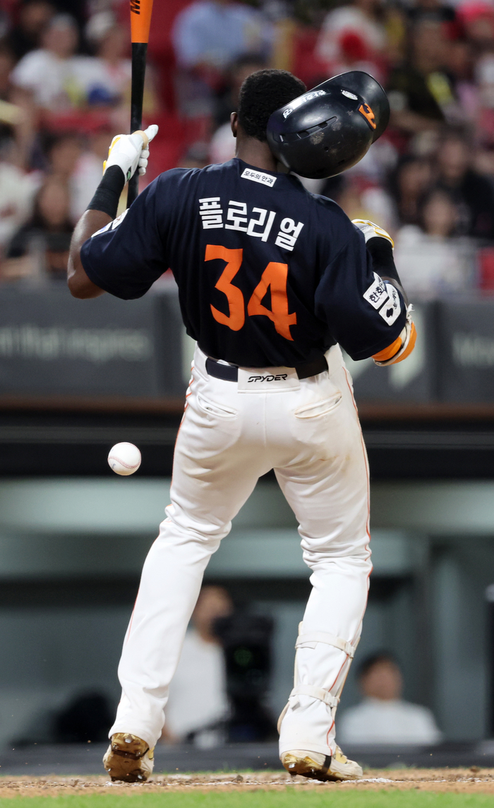 이 공이 플로리얼의 몸쪽 높은 코스로 향했다. 플로리얼이 제대로 피하지 못했고, 오른쪽 손등을 맞았다. 몸에 맞는 공이다. 플로리얼이 큰 고통을 호소했다. 그래도 교체 없이 경기를 소화했다.