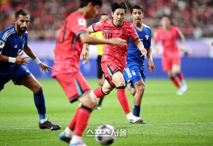 이강인이 10일 서울월드컵경기장에서 열린 2026 FIFA 북중미 월드컵 3차 예선 쿠웨이트와 경기에서 골대로 전력질주하고 있다.