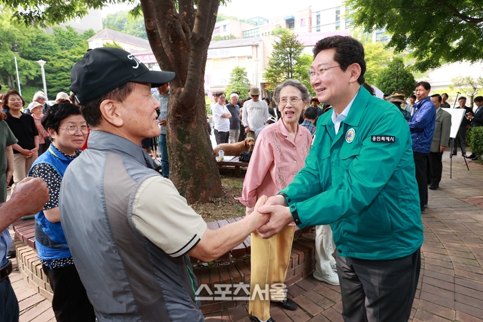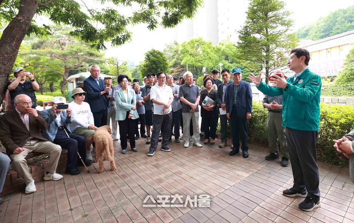 〔스포츠서울│용인=좌승훈기자〕이상일 용인특례시장은 10일 기흥구 마북동 교동마을 현대홈타운을 찾아 아파트 정문 진출입로를 확장해 달라는 민원의 타당성을 확인하고 확장을 약속했다.