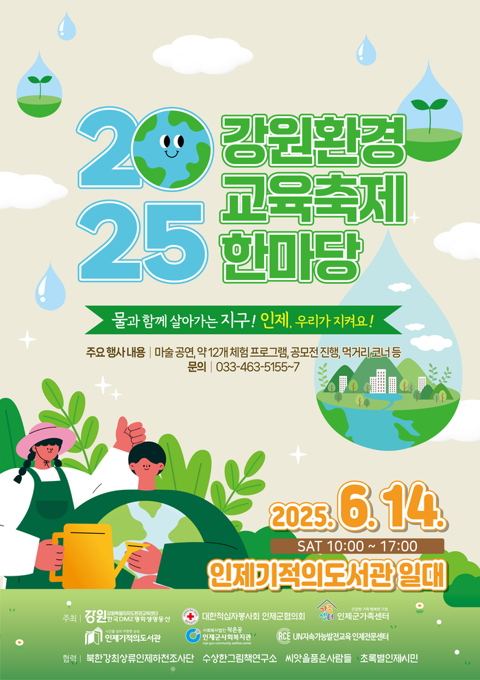 군은 6월 14일 인제 기적의도서관 일원에서 ‘2025 강원환경교육축제 한마당’을 개최한다고 밝혔다.
