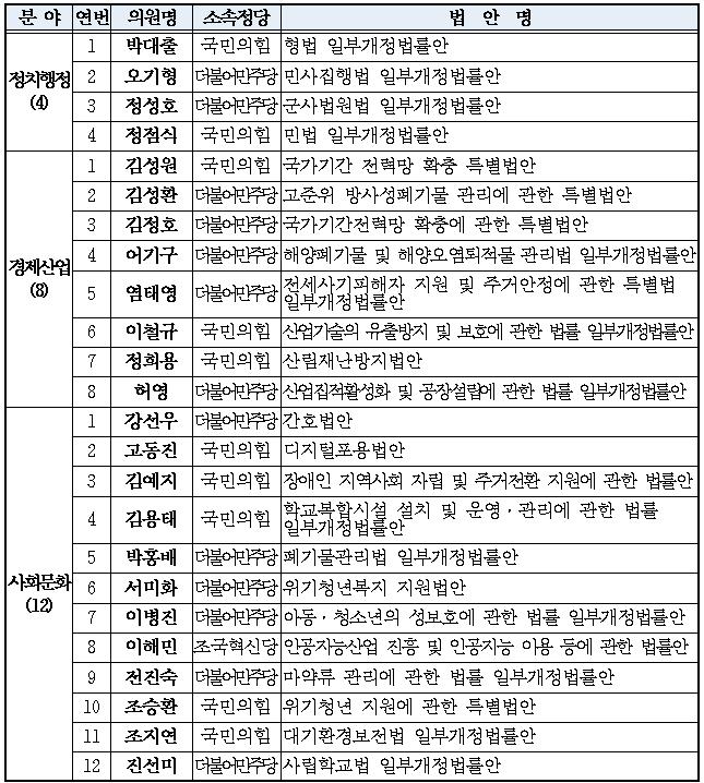 의정대상(입법활동 부문) 평가 기준 및 24개 우수법률안 소개.