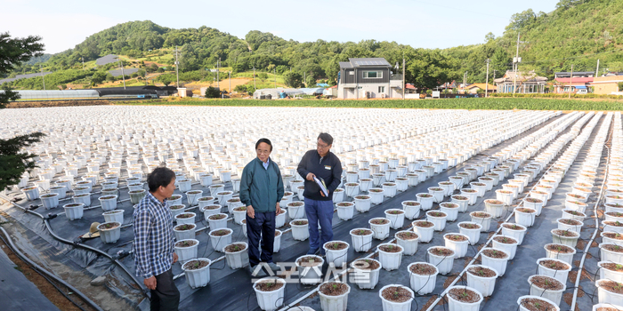 지난 11일 국화 정식 현장을 점검한 심 민 군수는 무더위 속에서 국화 생산 관리에 고생하고 있는 관계자들을 격려하고 애로사항을 청취했다.
