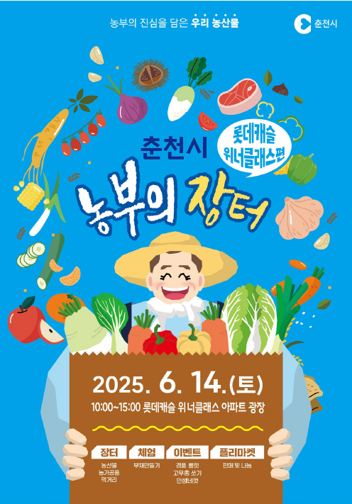 1회차 행사에는 춘천 지역 30여 농가가 참여해 제철 농산물, 가공식품, 축산물 등 80여 개 품목을 판매하며, 아이들을 위한 체험 부스와 먹거리 행사도 함께 열린다.