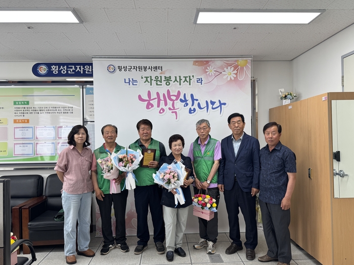 [스포츠서울ㅣ김기원기자]횡성군자원봉사센터(센터장 한재수)는 13일 횡성군자원봉사센터 사무실에서 ‘우리동네 봉사왕 시상식’을 갖고 안흥면에 개인 홍명자, 단체 안흥면새마을지도자협의회(회장 박형길), 둔내면에 개인 김명순, 단체 새마을문고 둔내면분회(회장 강희자)에 대한 시상식을 가졌다.