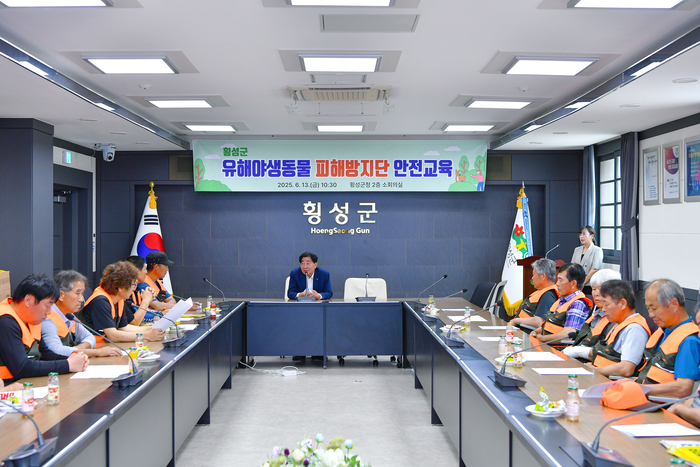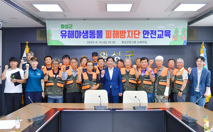 [스포츠서울ㅣ김기원기자]횡성군은 13일, 오전 10시 30분 군청 소회의실에서 유해야생동물 피해방지단을 대상으로 안전사고를 예방하고 현장 대응 역량을 강화하기 위한 안전교육을 실시했다.