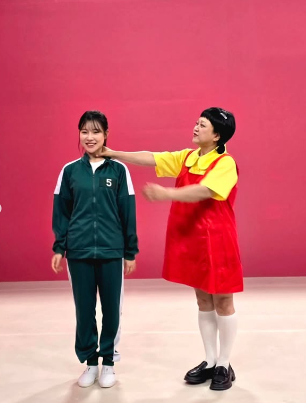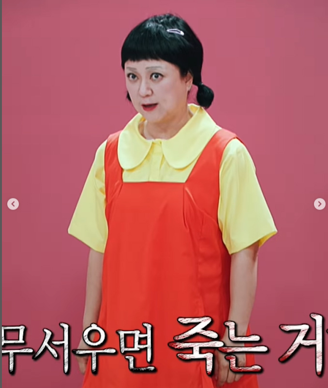 김숙은 15일 자신의 SNS를 통해 “커밍순... 많이 기다리셨죠? 시즌5가 옵니다”라는 글과 함께 사진과 영상을 게시했다. 공개된 사진 속 김숙은 ‘오징어게임’의 상징적인 캐릭터 ‘영희’의 노란색 셔츠와 빨간 멜빵 원피스, 양 갈래 머리 스타일을 완벽하게 재현했다. 특히 동그랗게 뜬 눈과 무표정한 얼굴은 원작의 섬뜩한 분위기를 자아내면서도 김숙 특유의 코믹함이 더해져 웃음을 유발한다.