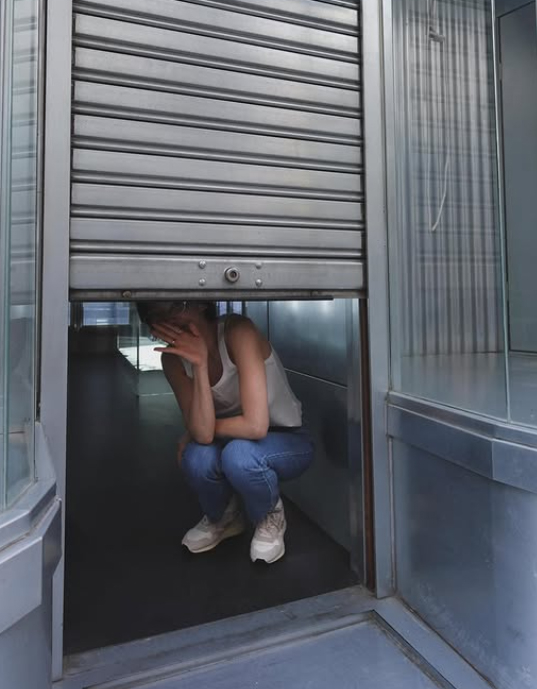셔터가 반쯤 내려온 공간에 웅크리고 앉아 있는 장난기 어린 사진도 공개되어 눈길을 끌었다.