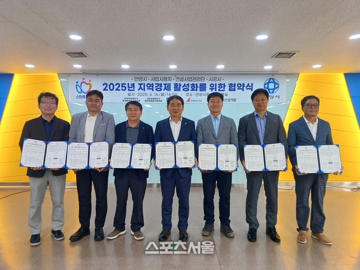 〔스포츠서울│안양=좌승훈기자〕경기 안양시는 16일 시청 3층 상황실에서 안양역세권지구 재개발정비사업 조합·신한아파트지구 재건축정비사업 조합·㈜건축사사무소광장·신성종합건축사사무소㈜·HDC현대산업개발㈜ 등과 ‘지역경제 활성화를 위한 업무협약’을 체결했다.