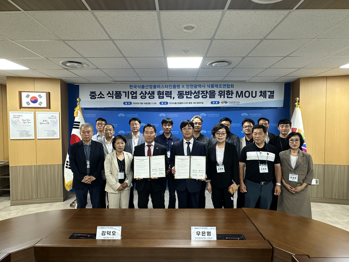 [스포츠서울ㅣ김기원기자]한국식품산업클러스터진흥원(이사장 김덕호, 이하 ‘식품진흥원’)과 인천식품제조연합회(회장 우은명)는 6월 16일 식품진흥원 본관에서 ‘식품산업의 지속가능한 성장과 경쟁력 강화를 위한 업무협약(MOU)’을 체결했다고 밝혔다.